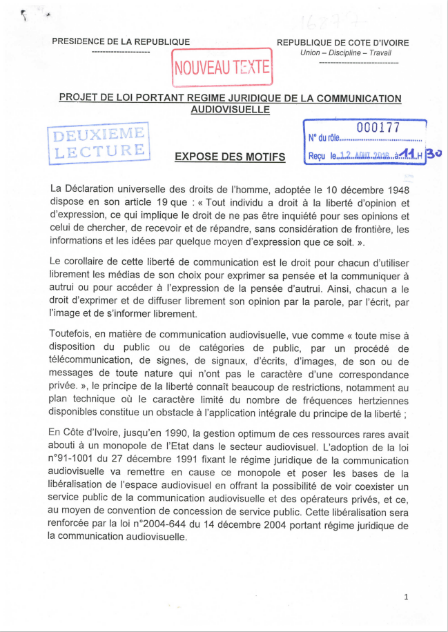 EXPOSE DES MOTIFS DU PROJET DE LOI PORTANT REGIME JURIDIQUE DE LA COMMUNICATION AUDIOVISUELLE