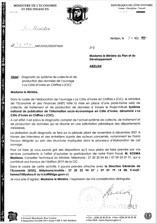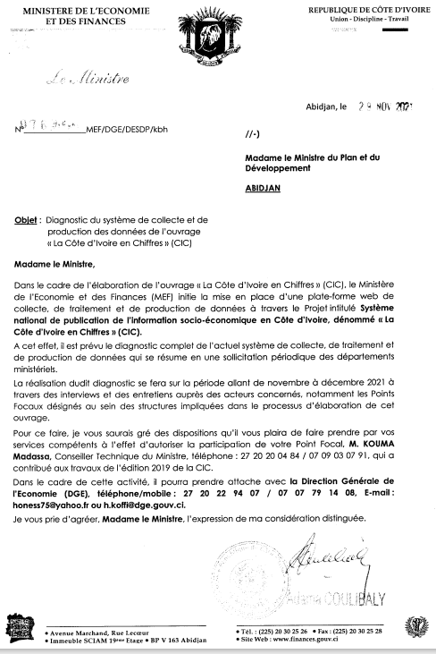 Diagnostic du système de collecte et de production des données de l'ouvrage < La Côte d'Ivoire en Chiffres » (CIC)