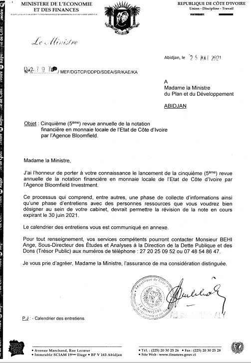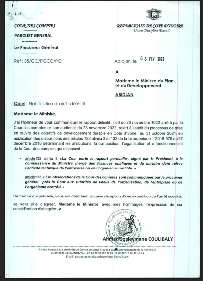 Notification d'arrêt définitif relatif à l'audit du processus de mise en œuvre des objectifs du développement durable en Cote d'Ivoire au 31 octobre 2021