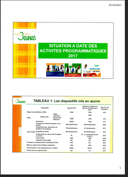 Bilan des Activités 1er Semestre 2017: Présentation du Rapport