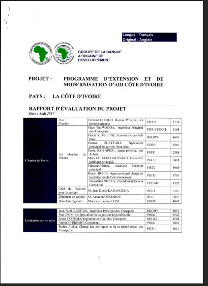 Rapport d'évaluation du projet programme d'extension et de modernisation d'Air Cote d'Ivoire
