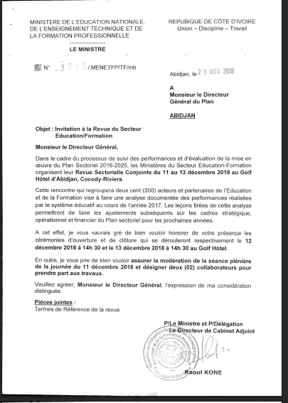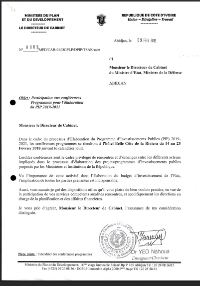 Organisation de la Conférence Annuelle de la Planification pour l'élaboration du Plan de Travail Annuel (PTA) 2019 du PND