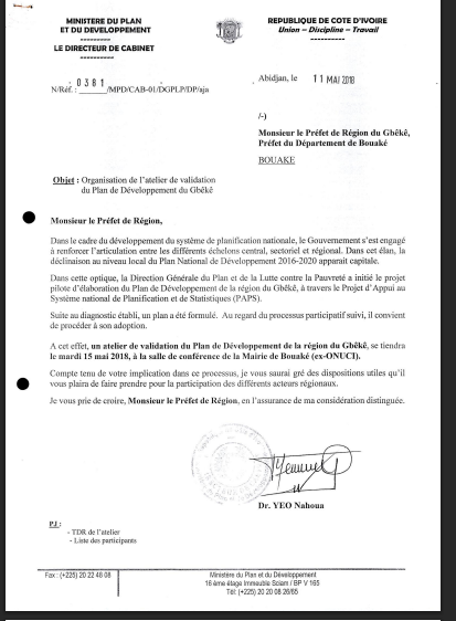 Organisation de l'atelier de validation du Plan de Développement du Gbêkê