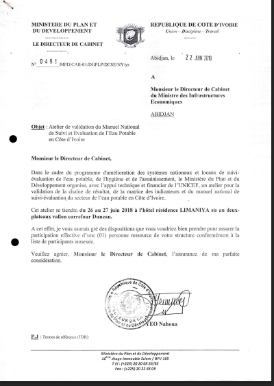 Atelier de validation du Manuel National de Suivi et Evaluation de l'Eau Potable en Côte d'Ivoire