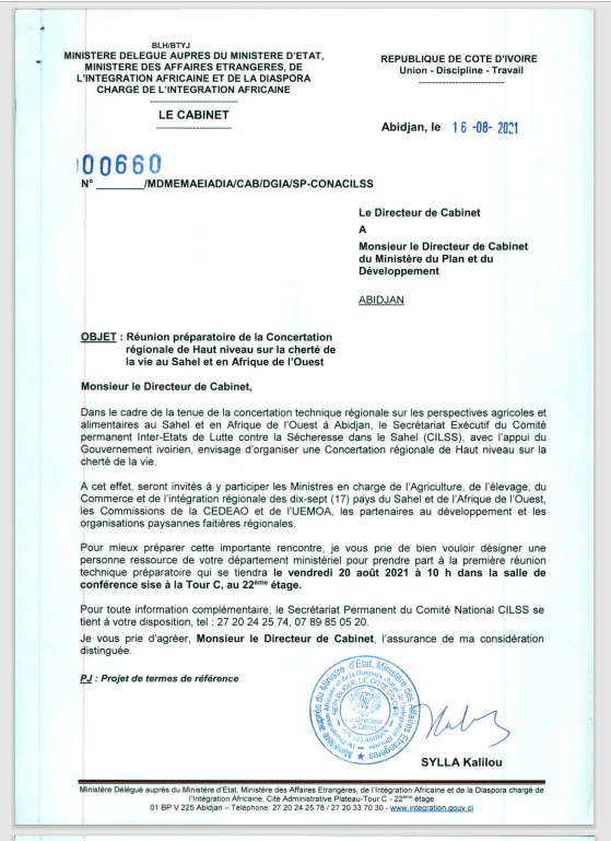 Réunion préparatoire de la concertation régionale de haut niveau sur la cherté de la vie au Sahel et en Afrique de l'Ouest