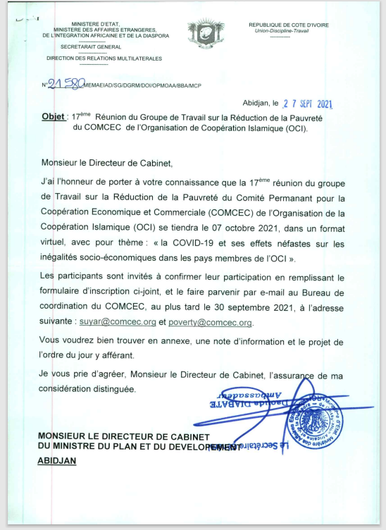17ème réunion du groupe de travail sur la réduction de la pauvreté du COMCEC de l'organisation de coopération islamique (OCI)