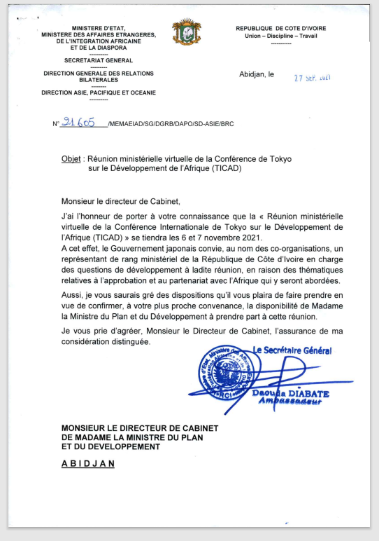 Réunion ministérielle virtuelle de la conférence de Tokyo sur le développement de l'Afrique (TICAD)