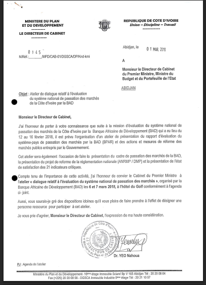 Atelier de dialogue relatif à l'évaluation du système national de passation des marchés de la Côte d'Ivoire par la BAD
