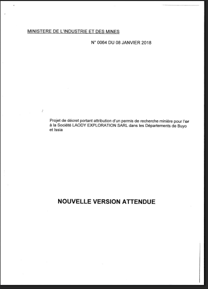 Projet de décret portant attribution d'un permis de recherche minière pour l'or à la Société LAODY EXPLORATION SARL dans les Départements de Buyo et Issia