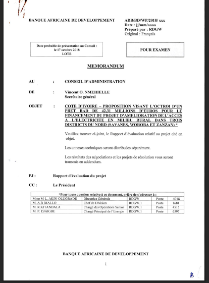 Cote d'Ivoire - proposition visant l'octroi d'un prêt BAD de 42,31 millions d'euros pour le financement du projet d’amélioration de l'accès a l'électricité en milieu rural dans trois districts du nord (savanes, Woroba et Zanzan)