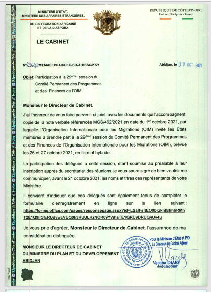 Participation à la 29ème session du comité permanent des programmes et des finances de l'OIM