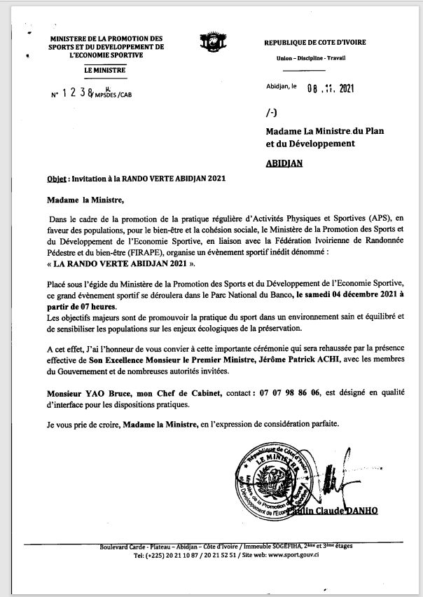 Invitation à la RANDO VERTE ABIDJAN 2021
