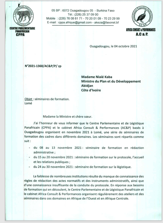 Organisation à Lomé d'une série de séminaires de formation des cadres dans différents domaines.