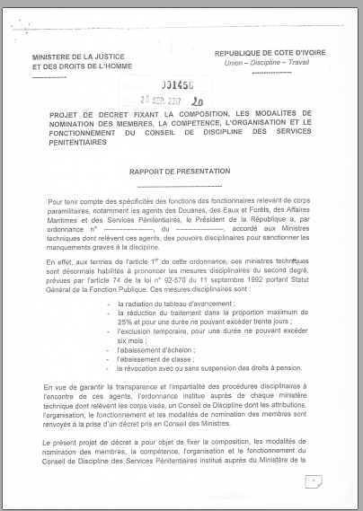 projet de décret fixant la composition les modalités de nomination des membres la compétence l'organisation et le fonctionnement du conseil de discipline des services penitentiaires