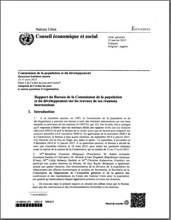 Rapport du Bureau de la Commission de la population et du développement sur les travaux de ses réunions intersessions