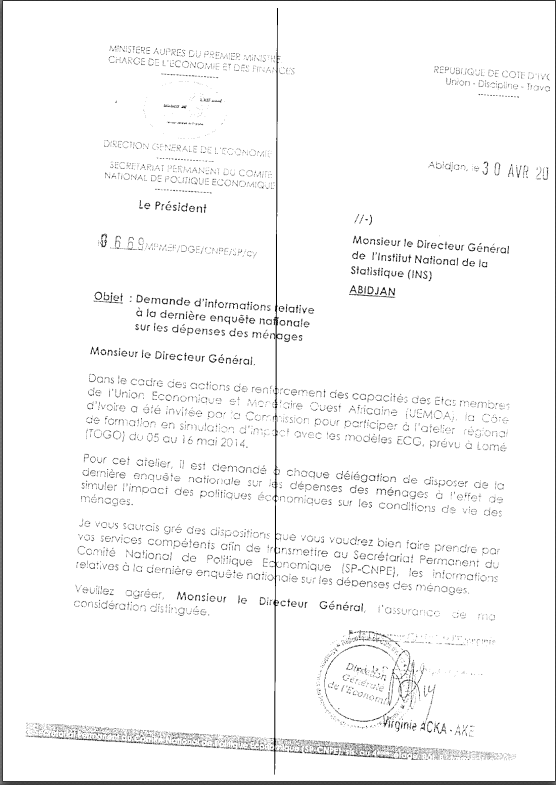 DEMANDE D'INFORMATION RELATIVE A LA DERNIERE ENQUETE NATIONALE SUR LES DEPENSES