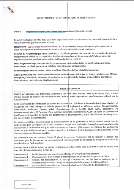 Programme conjoint pour La coordination de l'Aide ( PCCA) 2014-2015
